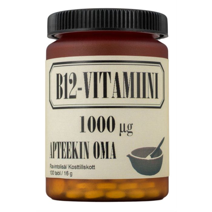 Apteekin Oma B12 1000 µg – vitamin är ett starkt vitamin B12-preparat som använder naturens egen, pre-aktiva form av vitamin B12 (metylkobalamin), som kan användas effektivt av kroppen som sådan.