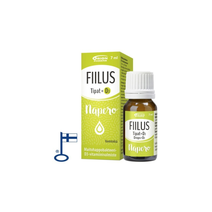 Fiilus Napero + D3 tipat ovat suunniteltu erityisesti lapsille. Valmiste sisältää Lactobacillus rhamnosus GG -maitohappobakteeria sekä D3-vitamiinia. Valmiste annostellaan kätevästi tippoina, jolloin se on neutraalin makunsa ansiosta helppo tarjota lapselle esimerkiksi mehuun, äidinmaitoon tai ruokaan sekoitettuna. Tuote on laktoositon, gluteeniton ja maidoton. Sopii maitoallergikoille ja keliaakioille.