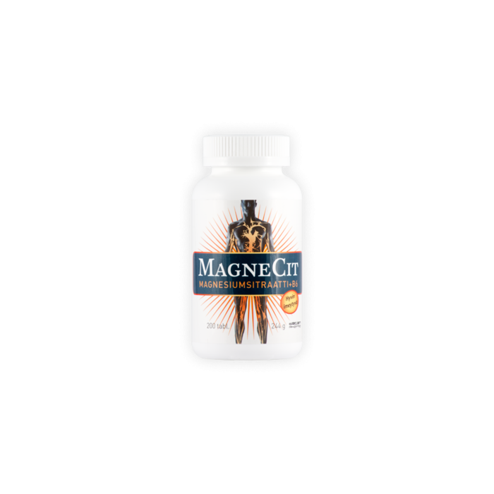 MagneCit on ravintolisä, joka sisältää hyvin imeytyvää kidevedetöntä magnesiumsitraattia sekä B6-vitamiinia.